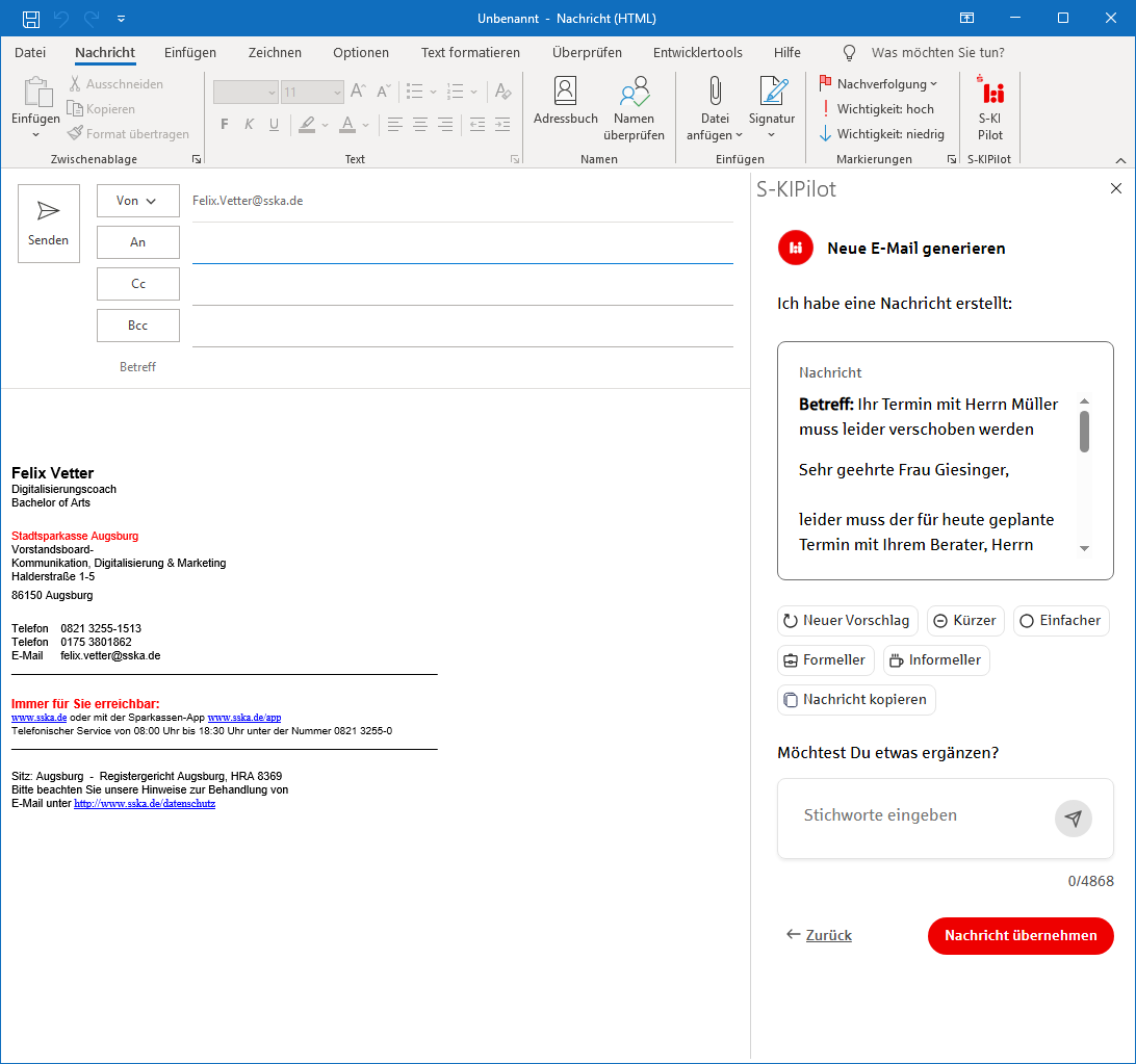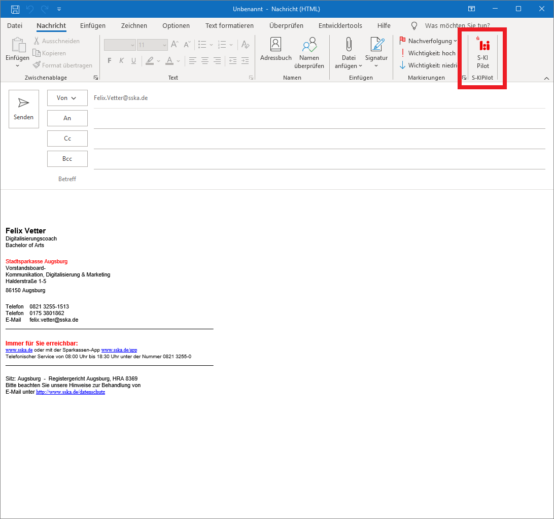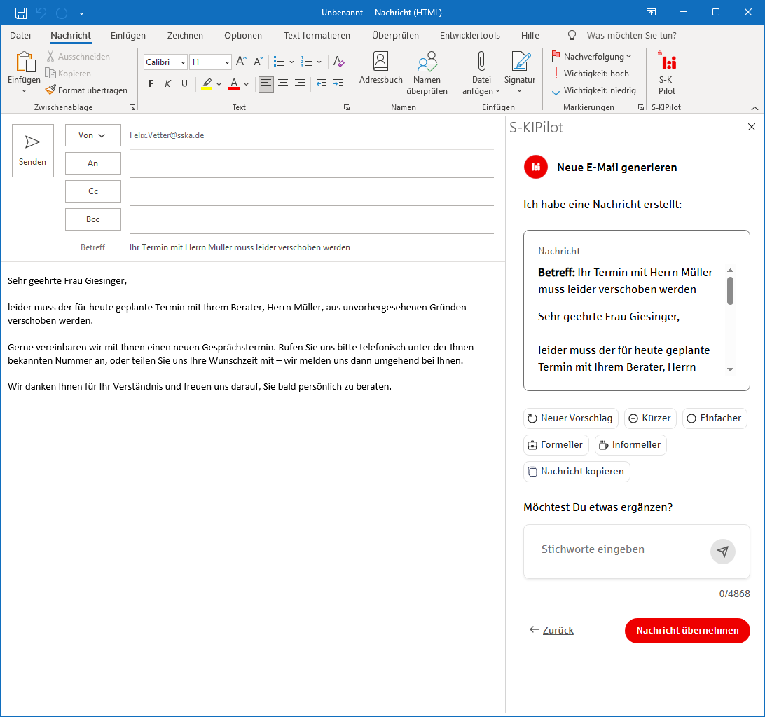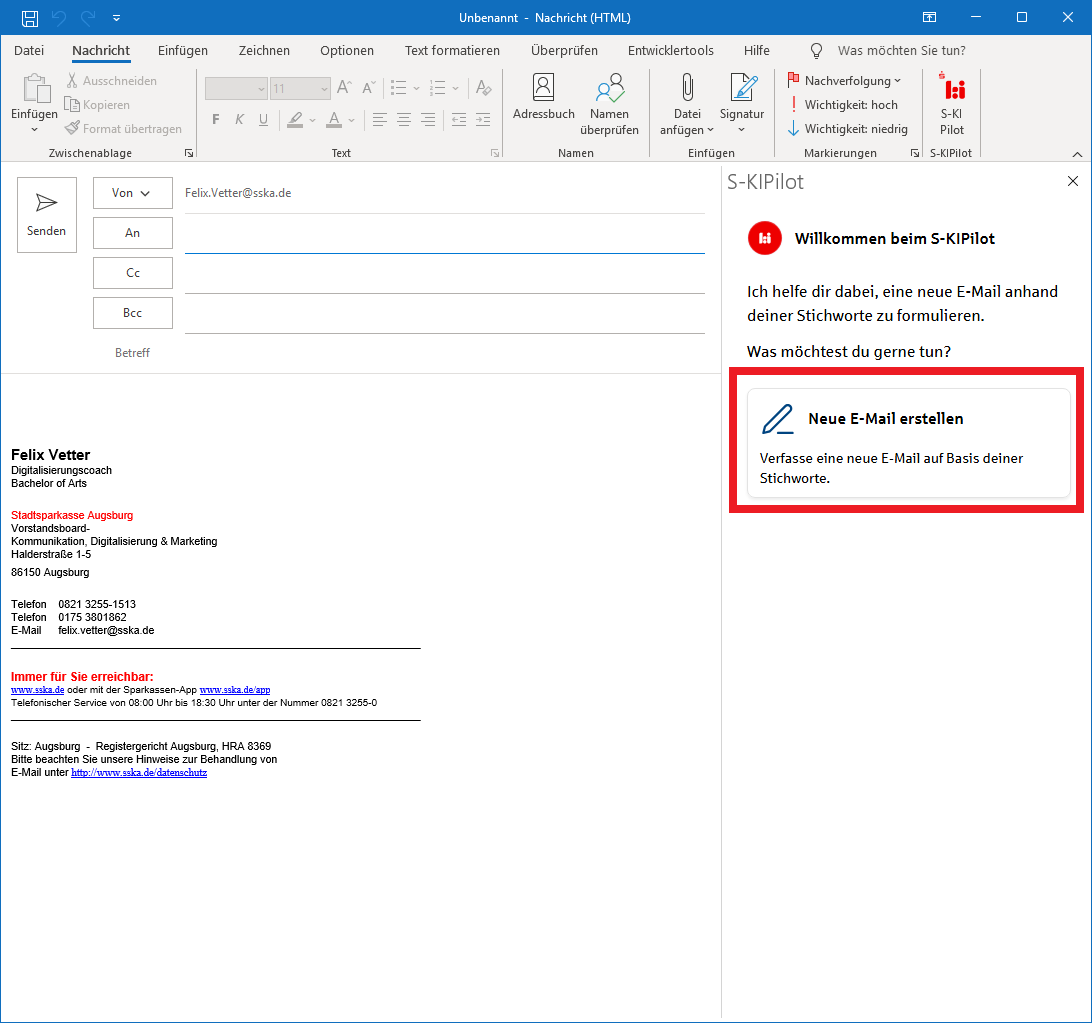 - Der S-KIPilot ist direkt in Outlook verfügbar oben rechts.